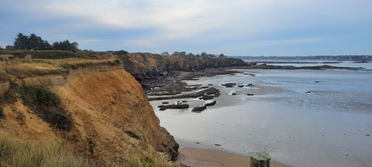 La Pointe de Pen Bé avance ses falaises ocres entre le Traict de Rostu et la Baie de Pont Mahé. Ces deux étendues marines qui se découvrent à marée basse sont les avant-scènes des marais, salants pour l’un et doux pour l’autre, qui les prolongent en arrière des cordons littoraux.