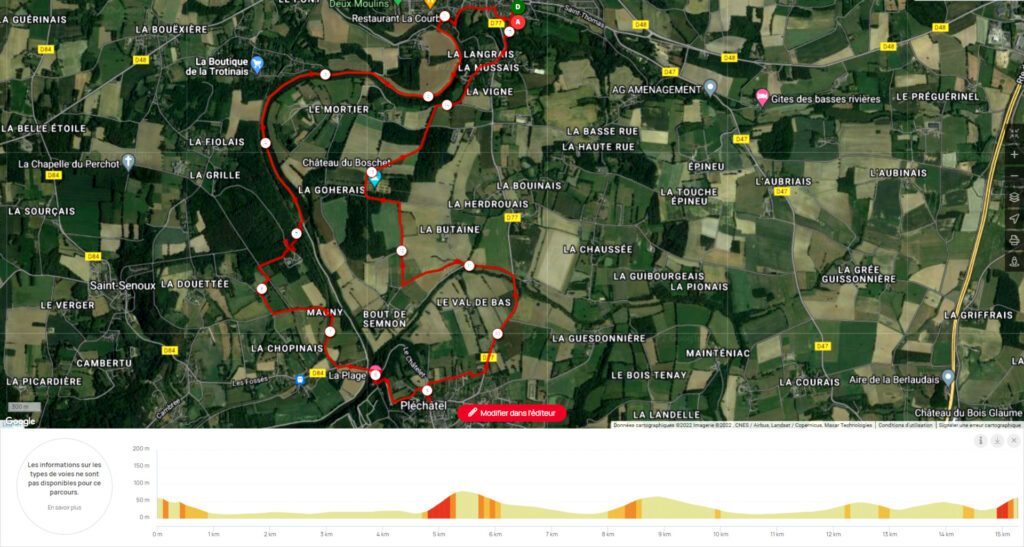 Le but était de faire le circuit des châteaux au départ de Bourg des Comptes : on en a croisé 3 ou 4 et un moulin en prime.