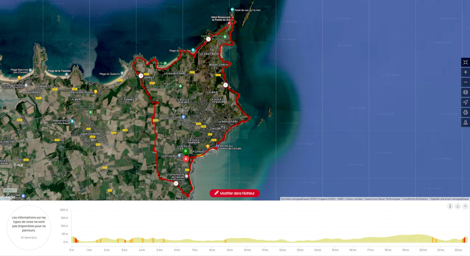 Le 12 mai 2022 Christine et JP étaient absents pour cause de COVID. Ils en profitèrent pout polluer le site du Cap Frehel et le château de Fort Lalatte Une journée vélo avait précédé la rando pédestre. Schéma et distance approximatifs par l’absence du métreur Distance : 15 km Durée : ? Marche : ? Dénivelé : 182m mais il y en a eu bien plus …
