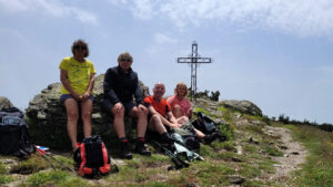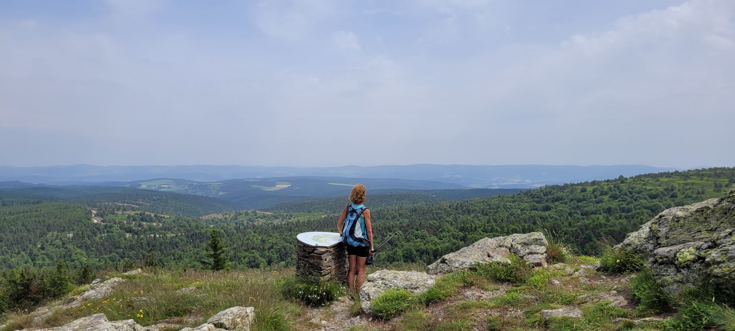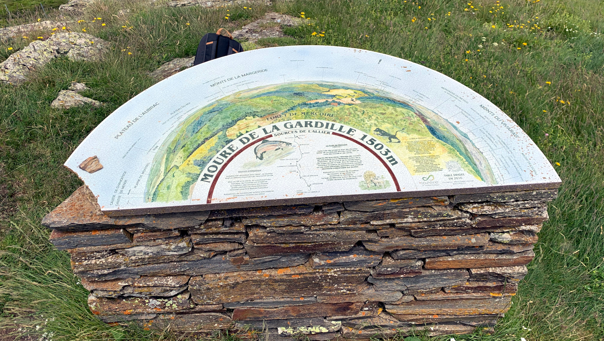 J3 Puylaurent – Chasserades De bon matin! Petite étape : 12,5kms, donc on va la rallonger pour aller voir les sources de l’Allier…détour de 10kms au final, 900m de dénivelé De bon matin! Le Moure de la Gardille Annick, ma sœur Annick… Les sources de l’Allier