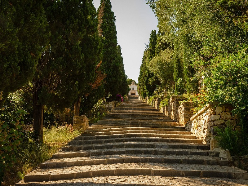 Marché à pollensa le matin puis la montée vers le Mont Calvari   – 450 marches .Baignade l’après-midi