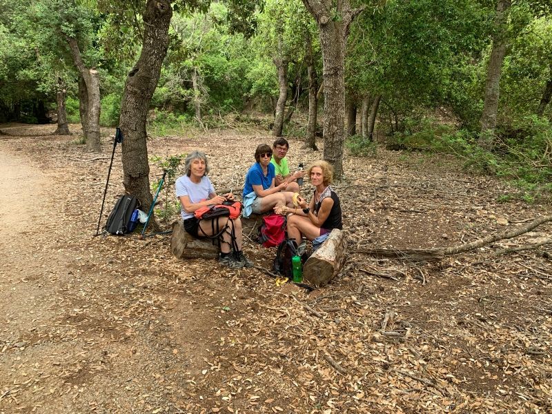 Nous avons un peu tatonné avant de trouver le départ du sentier qui serpentait jusqu’à un petit col avant de plonger vers la crique de Cala Murta occupée par grand nombre de boucs et chèvres , un peu trop affectueux !!