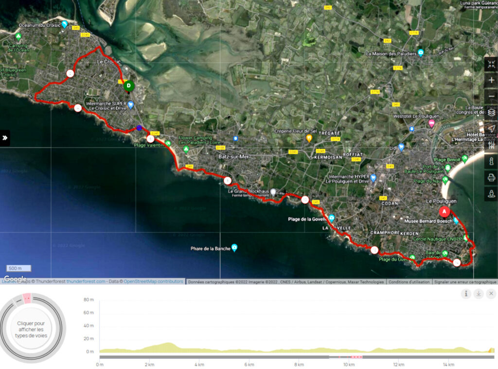 La balade consistait à rallier Le Pouliguen au Croisic en faisant le tour de la presqu’ile du Croisic en partie.