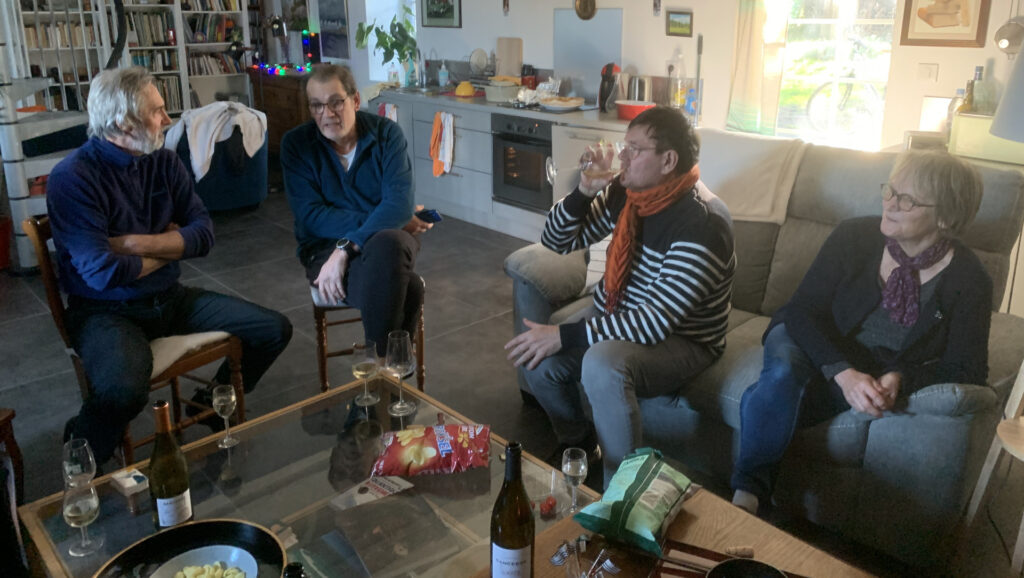 Nous étions presque au complet : Ne manquait que Jean Luc! Repas chez Philippe au coin du feu.