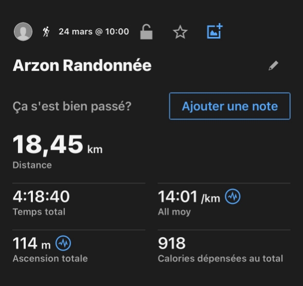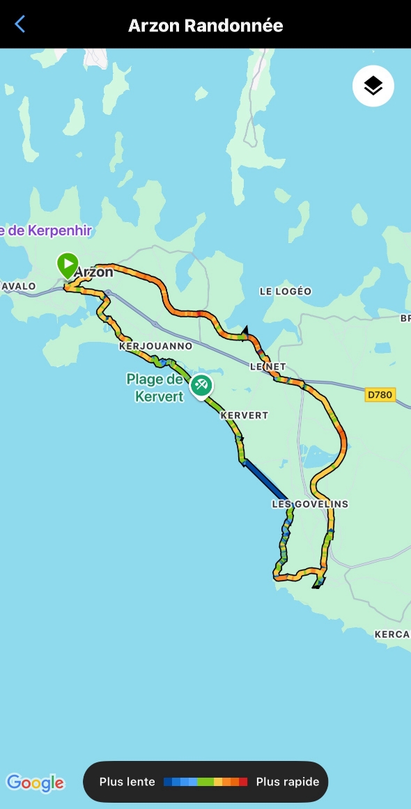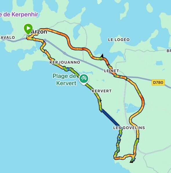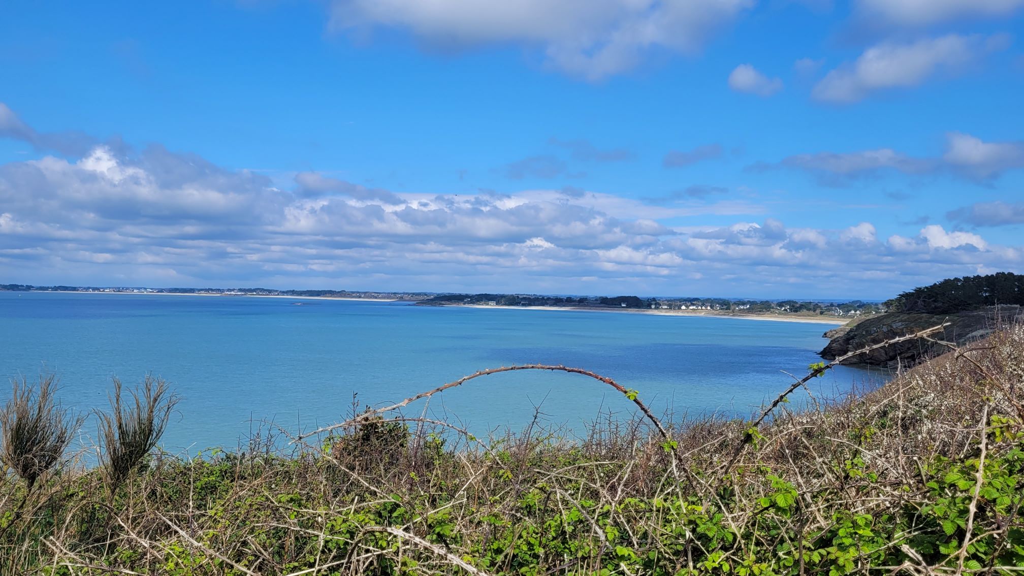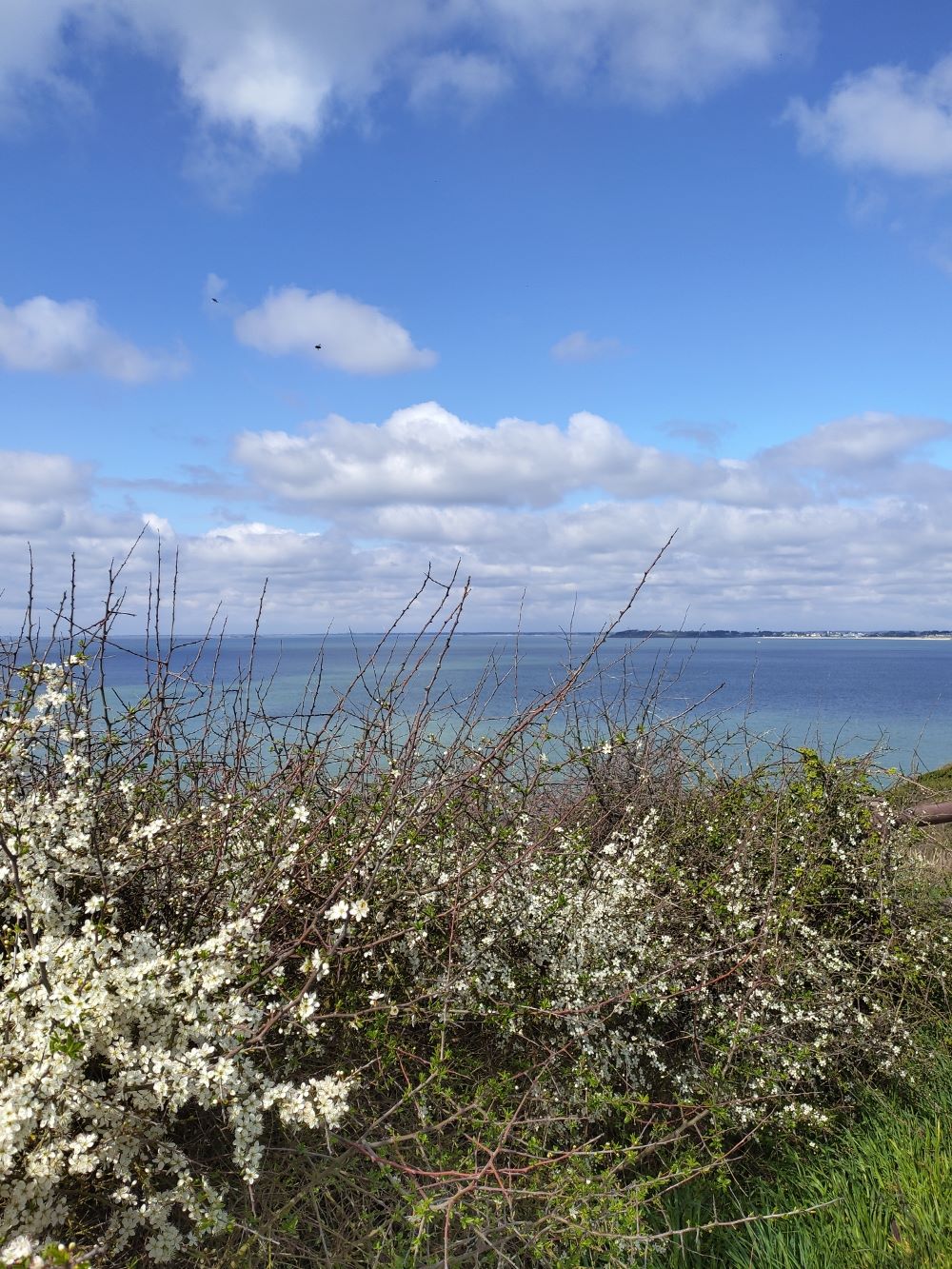 Balade en boucle au départ d’ Arzon en passant par St Gildas de Rhuys  . 1ère partie par une piste cyclable , retour par le bord de mer. Douceur printanière qui nous a permis de pique-niquer sur la plage.
