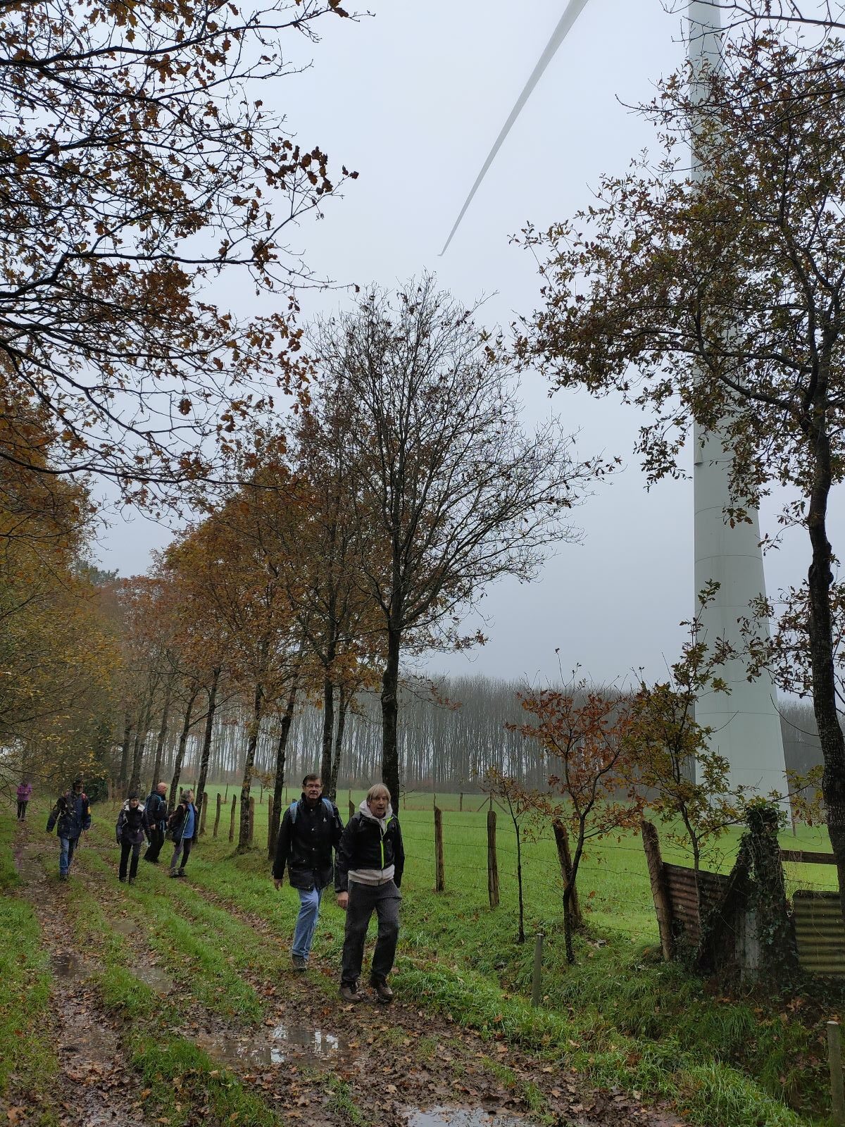 Les couleurs d’automne étaient magnifiques , les chemins très boueux et les éoliennes dans le brouillard . Et ………Philippe a étrenné sa nouvelle perche.